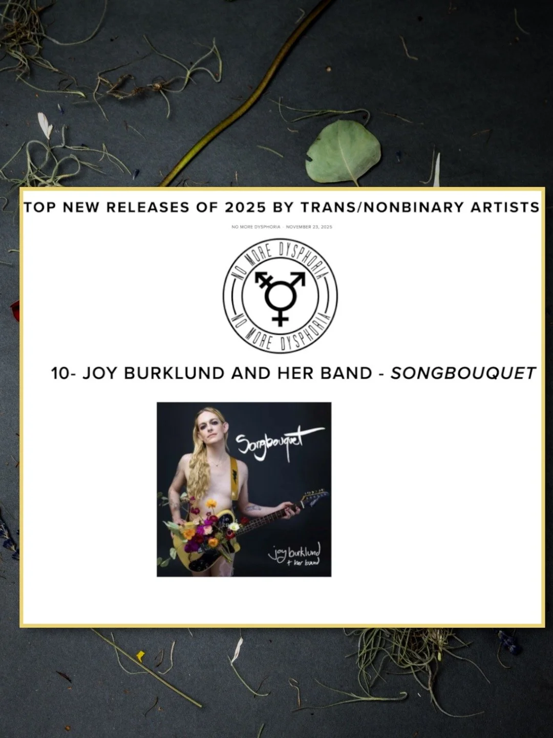 Alt-rock-anti-folk trans songstress joy burklund & her band have been a presence in the Philly DIY music scene since 2023, and released their debut album Songbouquet on March 21, 2025.