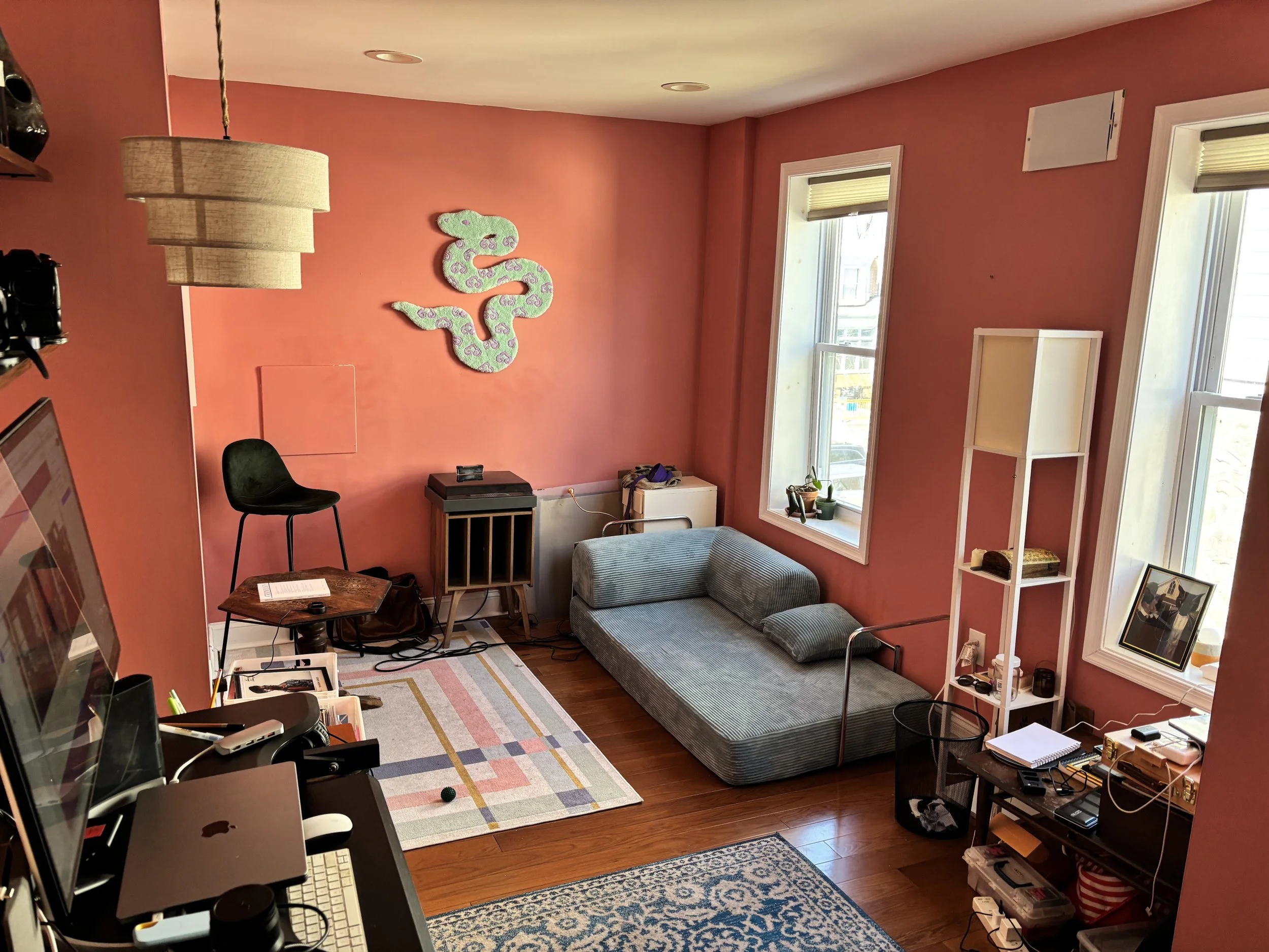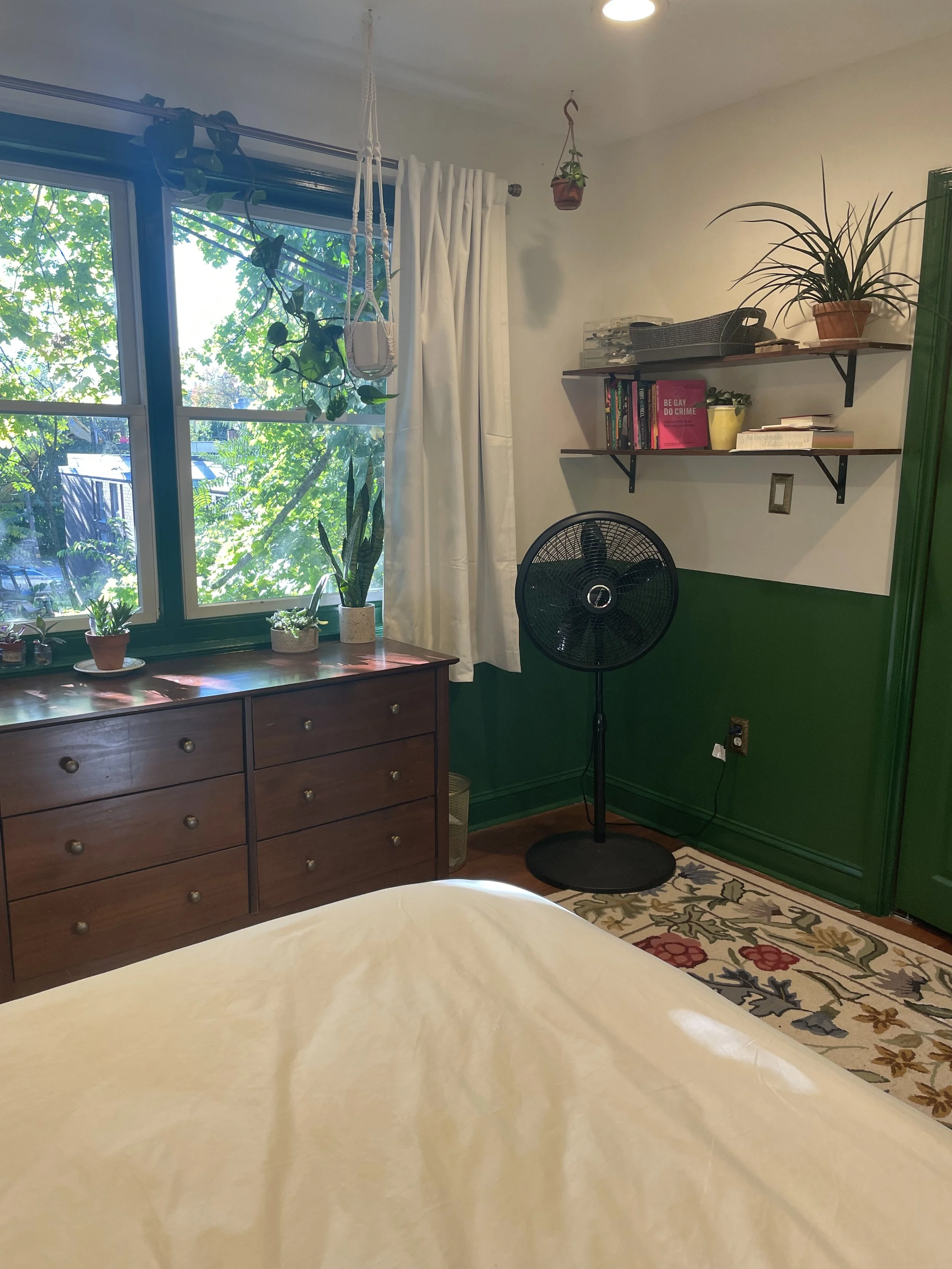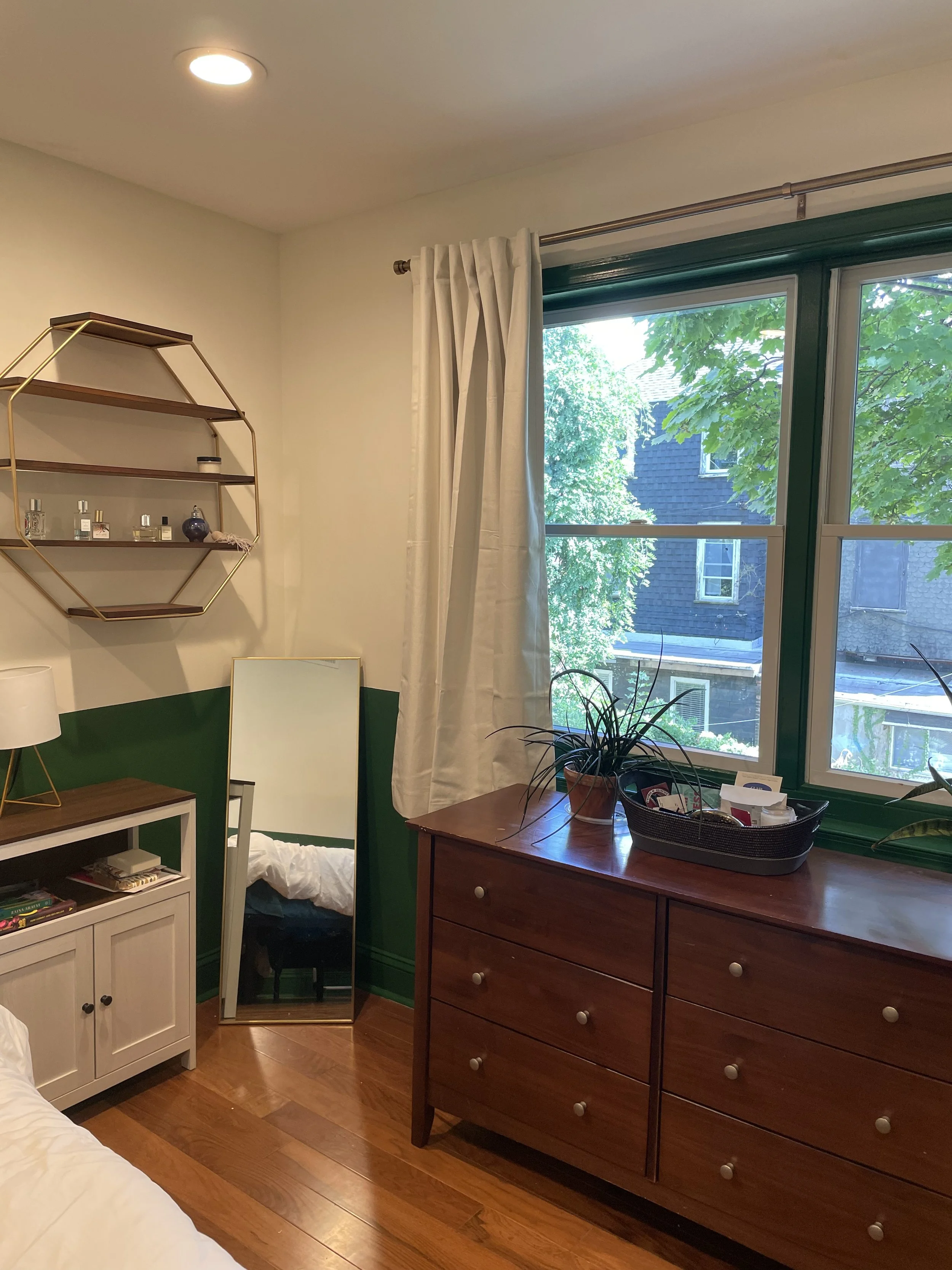 upstairs middle room: multiple possibilities for this room! could be a private office/workspace, den, or dressing area for you to spread out, room for a desk, crafting space, and couch. This space is primarily yours, tho I may ask to borrow it very occasionally to host out-of-town guests.