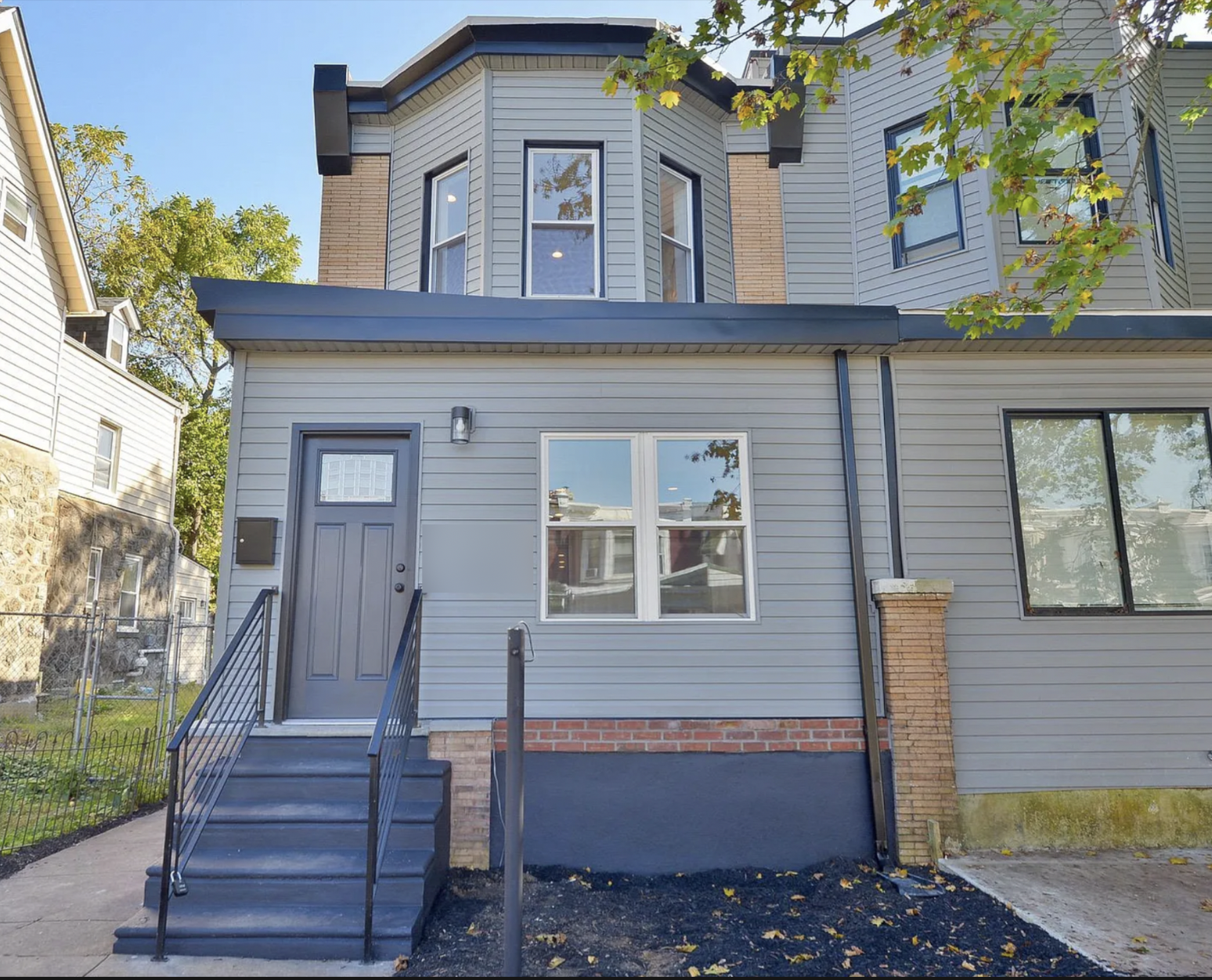 a 1925 oversized row home (one shared party wall) in cobbs creek at 58th and Ashland, one block from beautiful cobbs trail